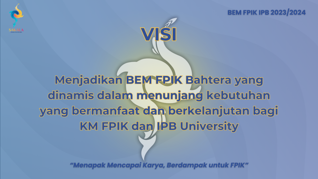 BEM FPIK IPB university merupakan organisasi mahasiswa intra kampus yang berperan sebagai lembaga eksekutif di tingkat perguruan tinggi. BEM FPIK IPB University merupakan wadah pengembangan kapasitas dan kapabilitas untuk Mahasiswa KM FPIK. sebagai penyambung aspirasi serta pembawa perubahan yang kolaboratif, responsif, solutif, dan membawa kebermanfaatan yang nyata dan berkelanjutan bagi KM FPIK dan IPB University.